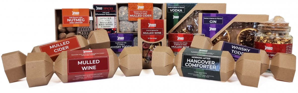 A range of mulling spices and herb and spice related gifts packed in 100% compostable or recyclable packaging.